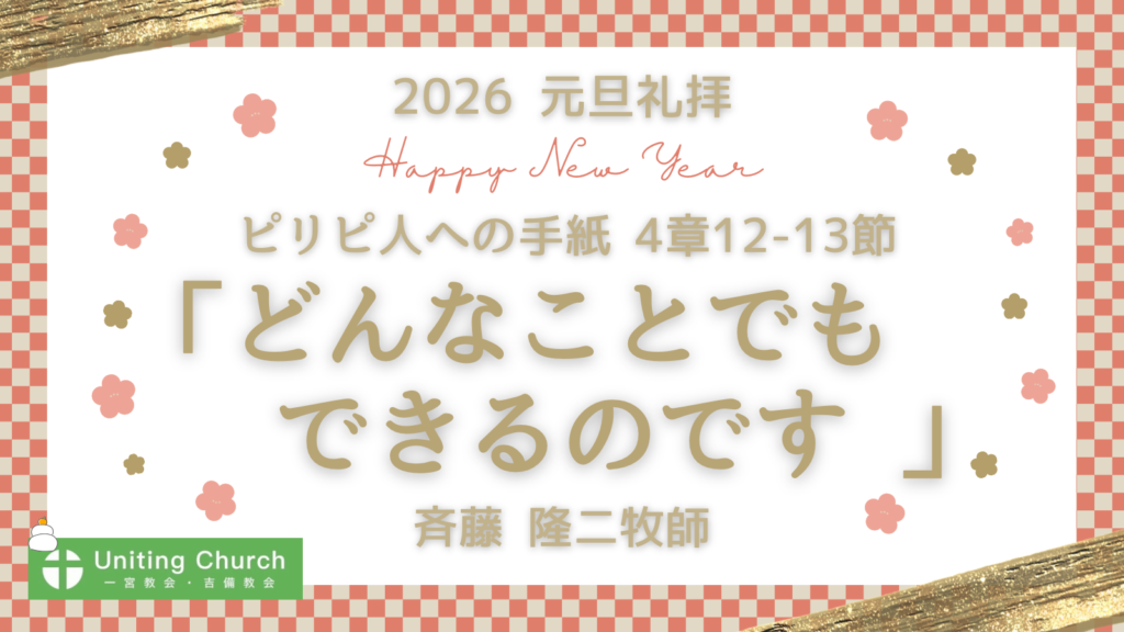 【録画・録音】元旦礼拝「どんなことでもできるのです」/ピリピ人への手紙4章12-13節/斉藤隆二牧師/2026年1月1日