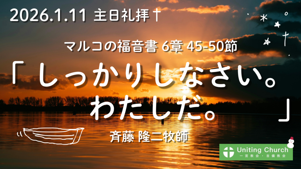【録画・録音】主日礼拝「しっかりしなさい。わたしだ。」/マルコの福音書6章45-50節/斉藤隆二牧師/2026年1月11日