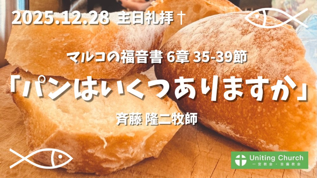 【録画・録音】主日礼拝「パンはいくつありますか」/マルコの福音書6章35-39節/斉藤隆二牧師/2025年12月28日
