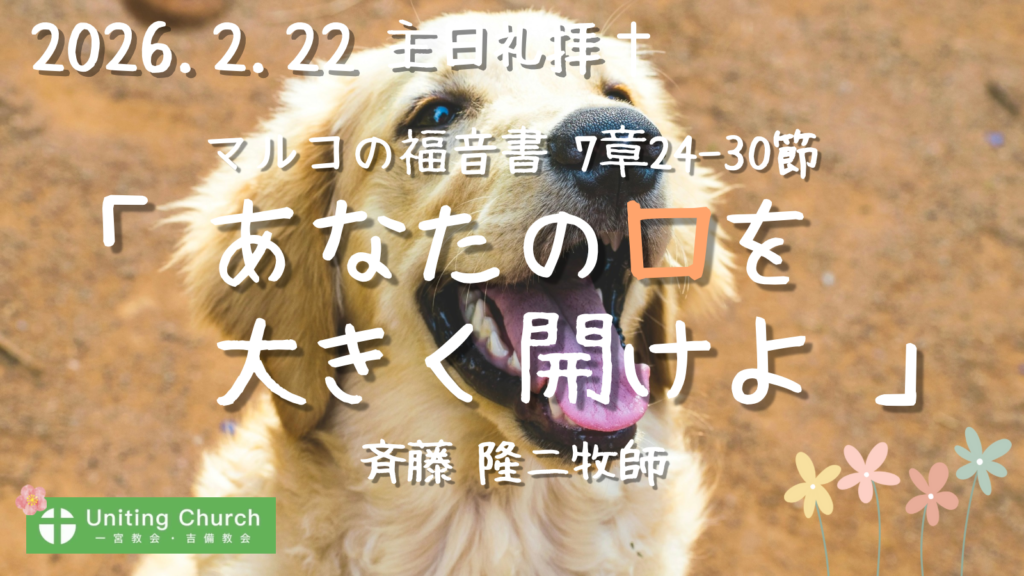 【録画・録音】主日礼拝「差し出そう、心を」/マルコの福音書7章17-23節/斉藤隆二牧師/田中理江師・証/2026年2月15日