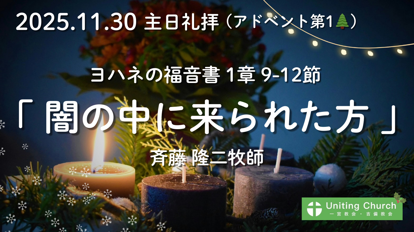 録音ファイルはこちら(Podcast) 本日の礼拝 よかったらシェアしてください URLをコピーしました! 【クリスマス賛美MV】「Noel」/Ruah Worship 賛美MV「Perfect Calm」/Words by Saito 関連記事 【録画・録音】主日礼拝「しっかりしなさい。わたしだ。」/マルコの福音書6章45-50節/斉藤隆二牧師/2026年1月11日 2026年1月11日 【録画・録音】元旦礼拝「どんなことでもできるのです」/ピリピ人への手紙4章12-13節/斉藤隆二牧師/2026年1月1日 2026年1月1日 【録画・録音】主日礼拝「パンはいくつありますか」/マルコの福音書6章35-39節/斉藤隆二牧師/2025年12月28日 2025年12月28日 【録画】クリスマスイブ礼拝「私と共に生きるために」/黙示録3章20節/斉藤隆二牧師/2025年12月24日 2025年12月24日 【礼拝録画・録音】クリスマス礼拝「神の御姿であられるのに」/ピリピ人への手紙2章6-9節/斉藤隆二牧師/2025年12月21日 2025年12月21日 【礼拝録画・録音】アドベント2「その時が来れば実現する」/ルカの福音書1章5-20節/斉藤泉牧師/2025年12月7日 2025年12月7日 【礼拝録画・録音】「御霊による成長」/コリント人への手紙第二 3章18節/柏原俊平神学生/2025年11月23日 2025年11月23日 【録画・録音】礼拝「愛し尽くす方」マルコの福音書6章30-34節/2025年11月16日 2025年11月16日 コメント コメントする コメントをキャンセルコメント ※ 名前 ※ メール ※ サイト 次回のコメントで使用するためブラウザーに自分の名前、メールアドレス、サイトを保存する。