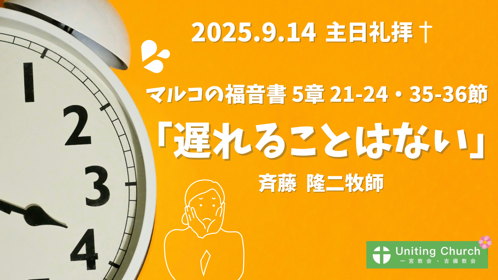 メッセージ録音 「今日もいい1日でした。」/さいとう よかったらシェアしてください URLをコピーしました! 【録画・録音】礼拝「見たこと、聞いたことを」/マルコ5章18-20節/斉藤隆二牧師/ ただいまー 関連記事 賛美MV「공감하시네/共有してくださる」 2026年1月11日 【録画・録音】主日礼拝「満たしてくださる方」/マルコの福音書6章40-44節/斉藤隆二牧師/2026年1月4日 2026年1月4日 2025イブ礼拝の配信について/12月24日(水)19:30-20:15 2025年12月21日 MV/「詩篇4」作:中山告 2025年12月14日 【礼拝録画・録音】アドベント第3「私の家に来られる方」/ルカの福音書19章1-7節/斉藤隆二牧師/2025年12月14日 2025年12月14日 島のおやっさん/Mr. Claes Göran Karlsson from Vrångö 2025年12月11日 vlog193/インターン神学生が見た、ユナイティング・チャーチの実態/ 2025年11月23日 そんな牧師に私もなりたい 2025年11月11日 コメント コメントする コメントをキャンセルコメント ※ 名前 ※ メール ※ サイト 次回のコメントで使用するためブラウザーに自分の名前、メールアドレス、サイトを保存する。