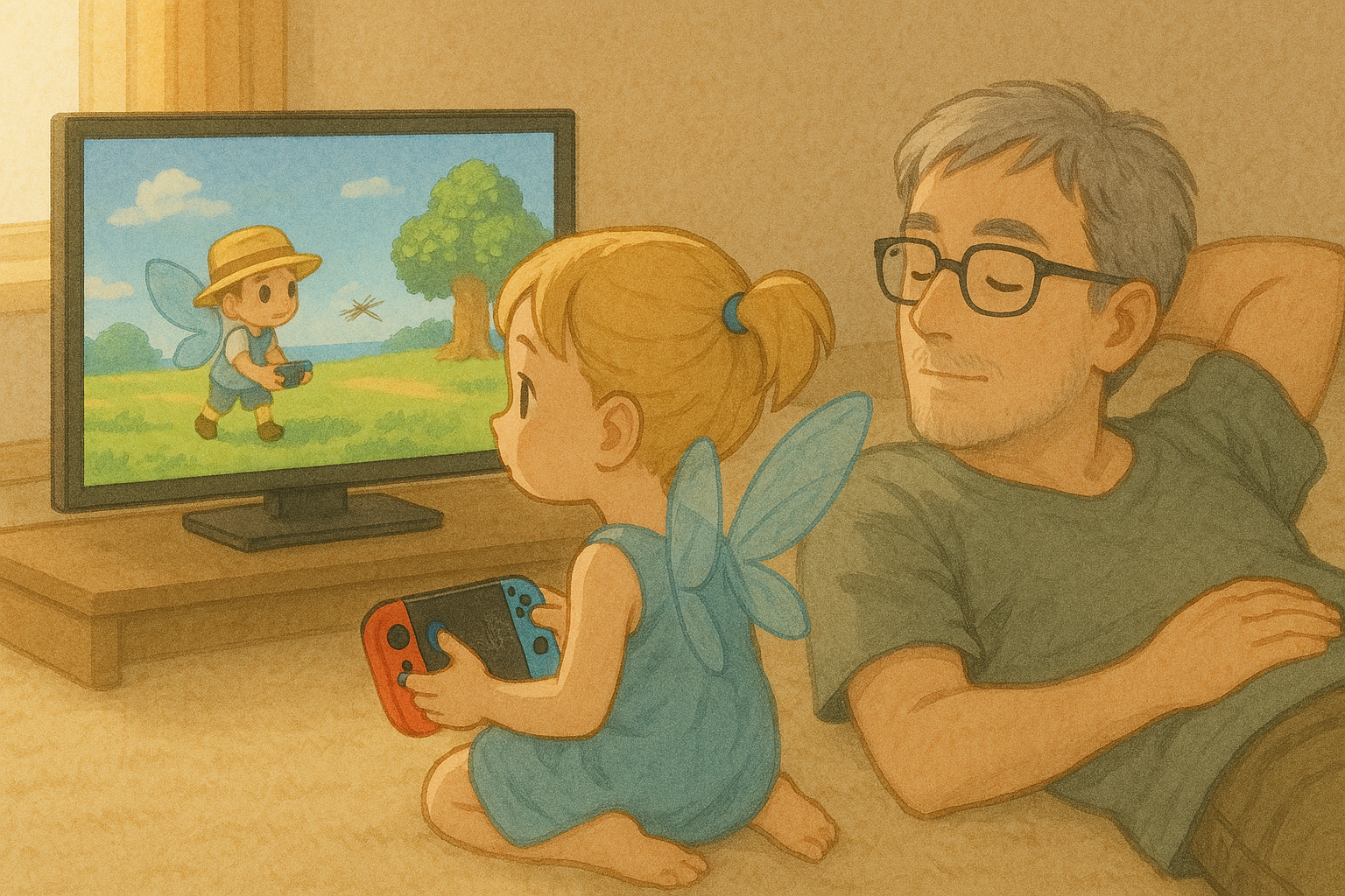 やり方を覚えた子の隣でごろんと横になって、のんびり眺めていると、「あ、これまさになつやすみって感じ」という気持ちになったわけです。なんともなつかしい、平和な時間。